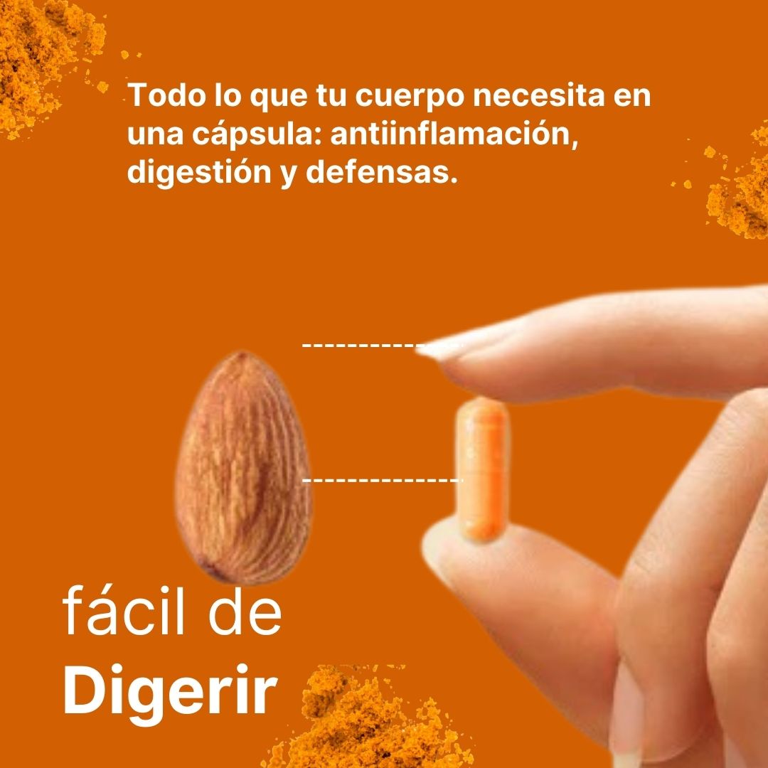 1 cápsula diaria: inflamación bajo control y digestión ligera.